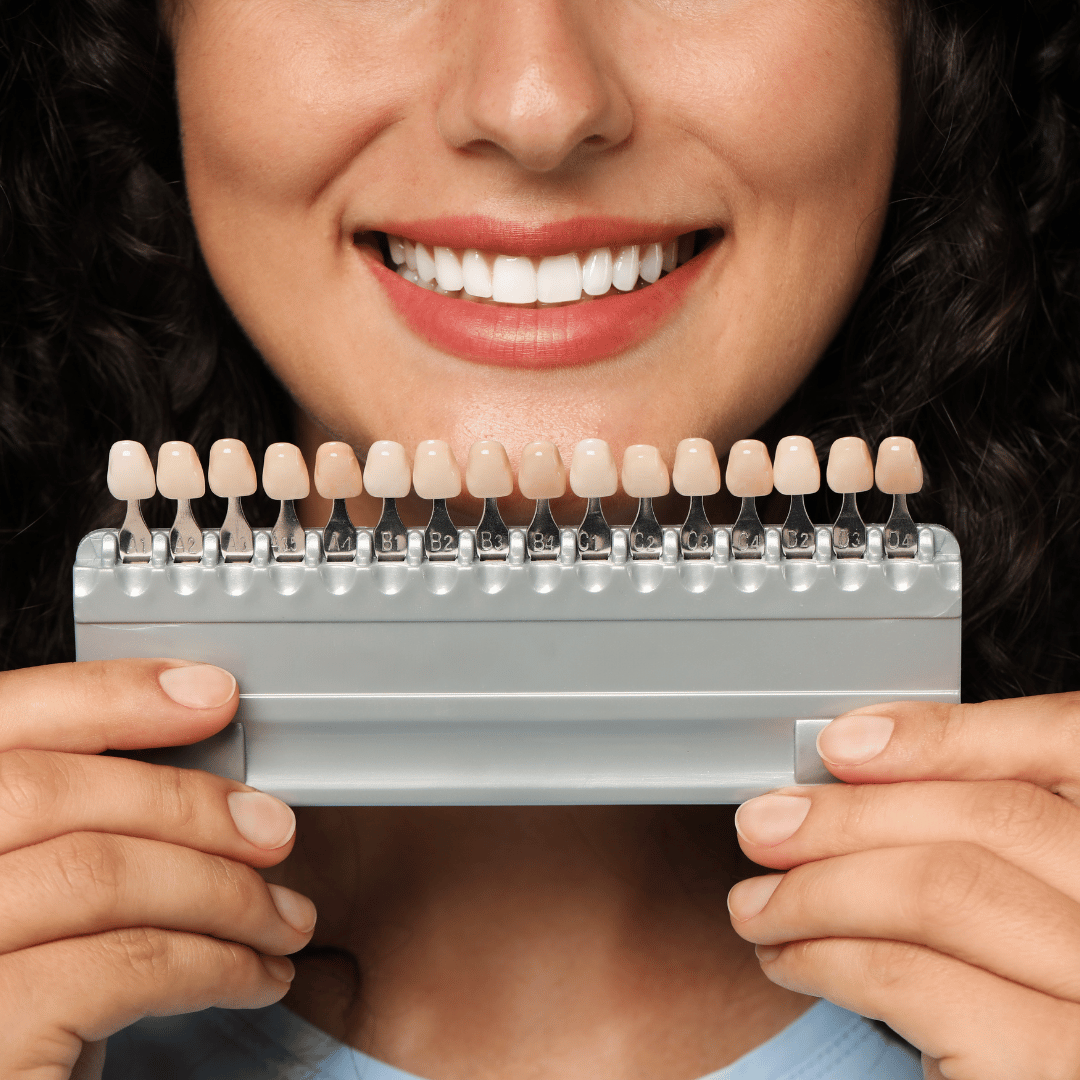 Thin shells bonded to the front of teeth to improve appearance instantly.